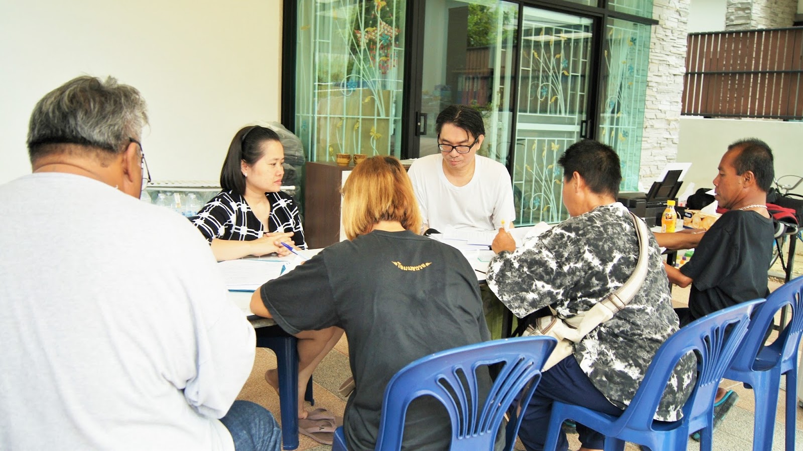 ทุกคนกำลังเขียนคำร้อง ใบมอบอำนาจ และใบสมัครสมาชิกเครือข่าย